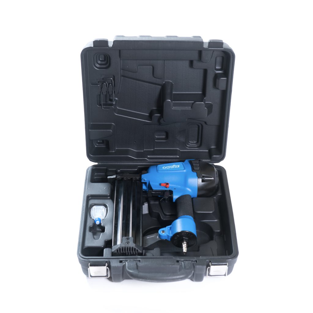 Air Gun ST64 is suitable for the packaging industry, construction, furniture manufacturing, decoration industry, fastening for wood, wood frame, plywood to concrete nailing, brick and concrete walls, baseboards, and floorboards. It is also possible to attach 1 mm thick metal shelves to the brick masonry walls (ground) surface. Nailer usable for Construction framing, Nailing wood to concrete (steel nails), Flooring Top Nailing, Truss building, Fencing, Floor boarding, Cabinet building, Paneling, Trimming, Pallet, and packaging, and more applications. Hard carrying case included. Craftor top-nailer is manufactured and tested to a very tight tolerance band for each of these attributes. The combination of these attributes minimizes the potential for nail jams, prevents tool damage, and makes it possible to drive the fasteners into any type of wood.